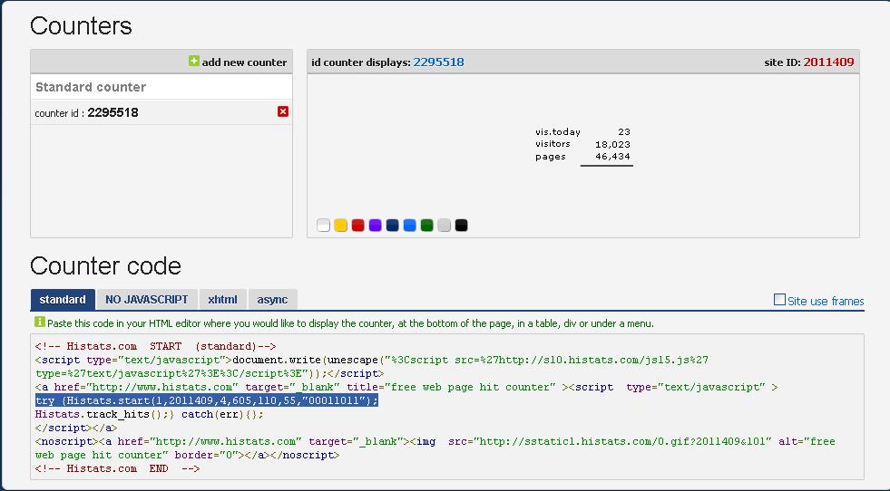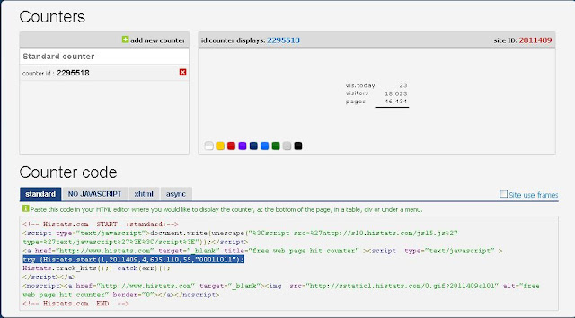 <div class='Staticss'>5. Sau đó, bạn vào trang http://www.histats.com, đăng ký một tài khoản và tạo cái thống kê, xong bạn lấy mã và để ý đoạn mã như trong hình dưới đây: